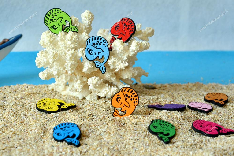 - 2 boyutlu balık 3 mm keçeden üretilmiştir.- yaklaşık 5*3,5 cm boyutlarında.- 25 adetlik paketler halinde.